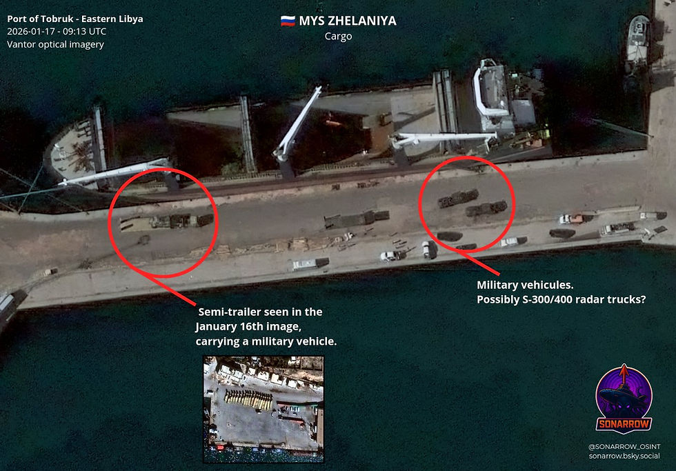 It is highly probable that the arrival of Mys Zhelaniya in Tobruk around 20 January 2026 reflects a deliberate Russian effort to strengthen logistical and military posture. The vessel, a 17,000 DWT cargo ship, departed from Baltiysk (Kaliningrad) and traveled in convoy with the Sparta IV (also sanctioned), escorted by the Severomorsk destroyer (Udaloy-class). Tobruk is controlled by Khalifa Haftar’s forces, supported by Moscow.